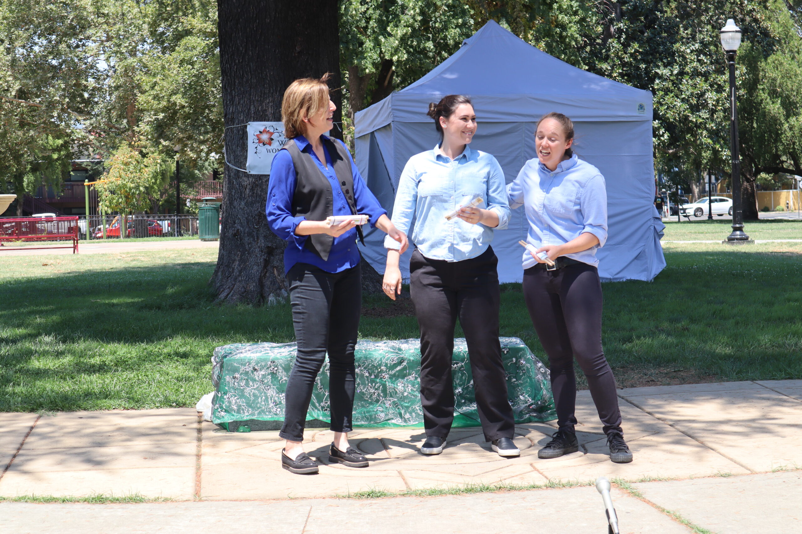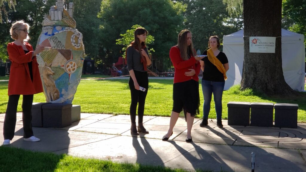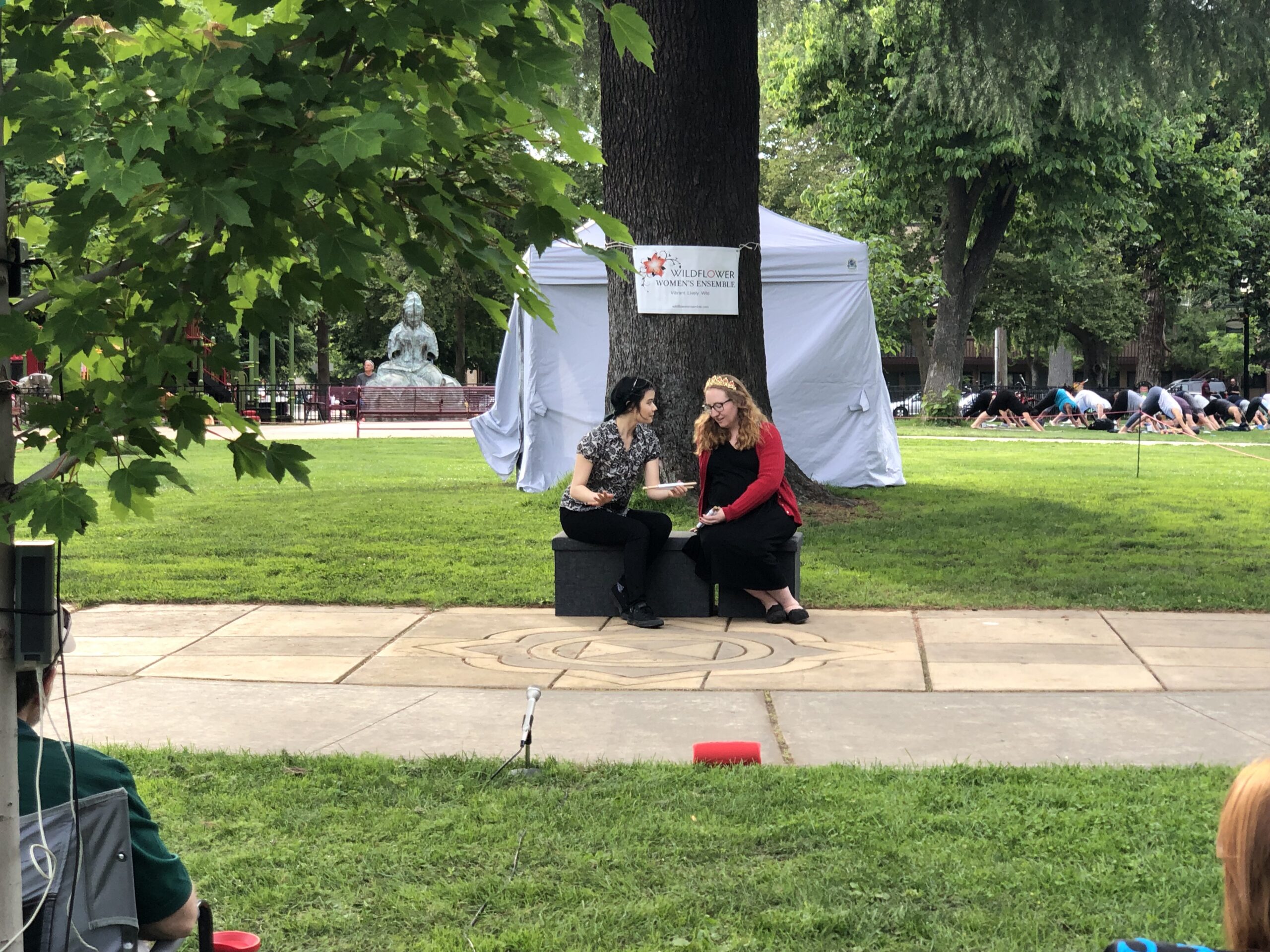 Another curious aspect of performing in a public park like Fremont, we often have to contend with fire trucks, police sirens, motorcycle groups, the Beer Bike, music from the restaurants, and other noise concerns. We embrace it and will even stop to let it finish, then pick up where we were.